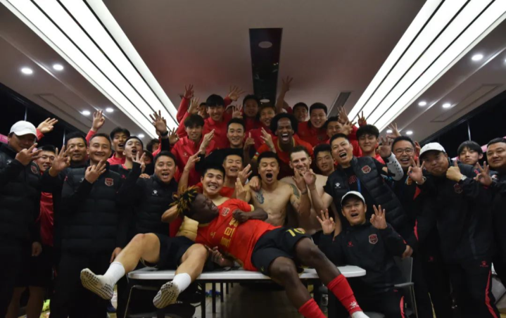 球队庆祝胜利的大合影中,马格诺的大脑门格外显眼
